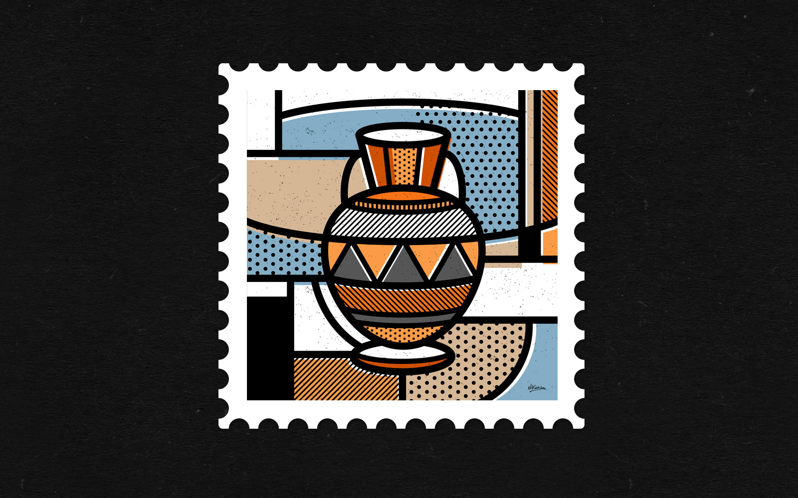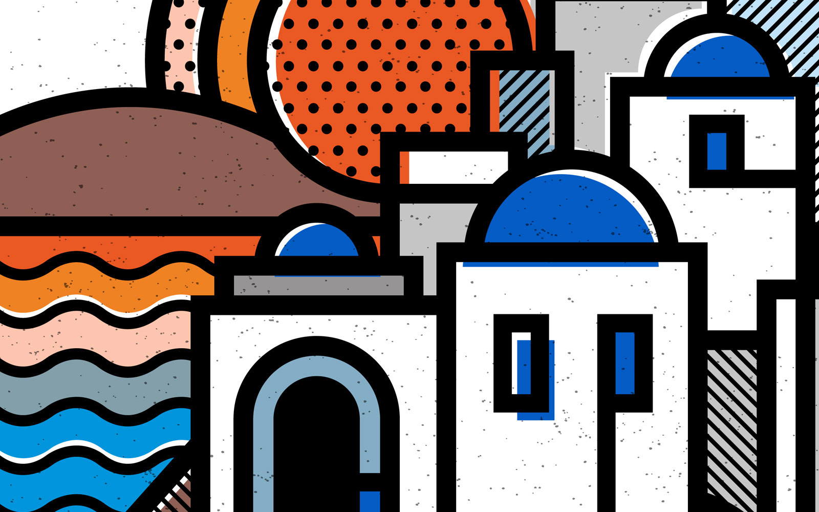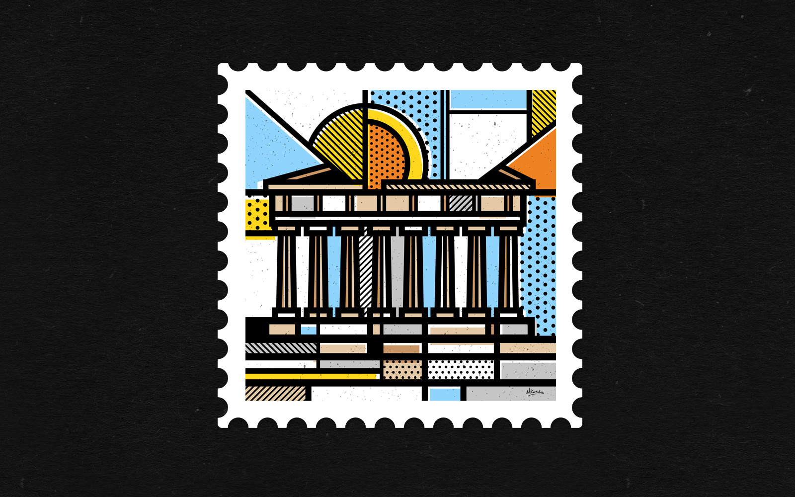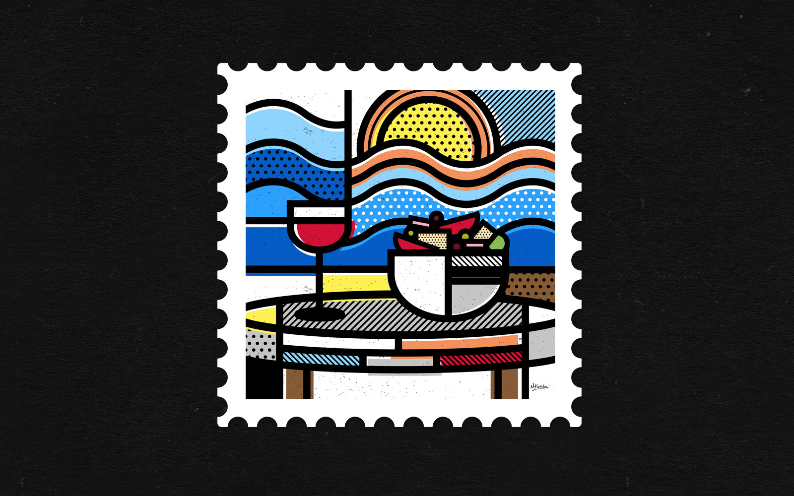 This stamp collection is a self initiated project that aims to show the beautiful side of Greece in an illustrative abstract style. Greece has been a trending topic the past couple of years due to the economic and refugee crisis. So the social and political aspects going on right now in Greece makes us sometimes forget that it is one of the most beautiful and safest places on earth. It combines nature and history, amazing beaches and mesmerizing food. In my collection i tried to visualize in my own style some very characteristic places and sceneries in Greece, like Greek islands, ancient artifacts and landmarks, beaches, traditional houses and food. I will probably make prints available soon too. Hope you enjoy the project and come visit Greece, you won't regret it.