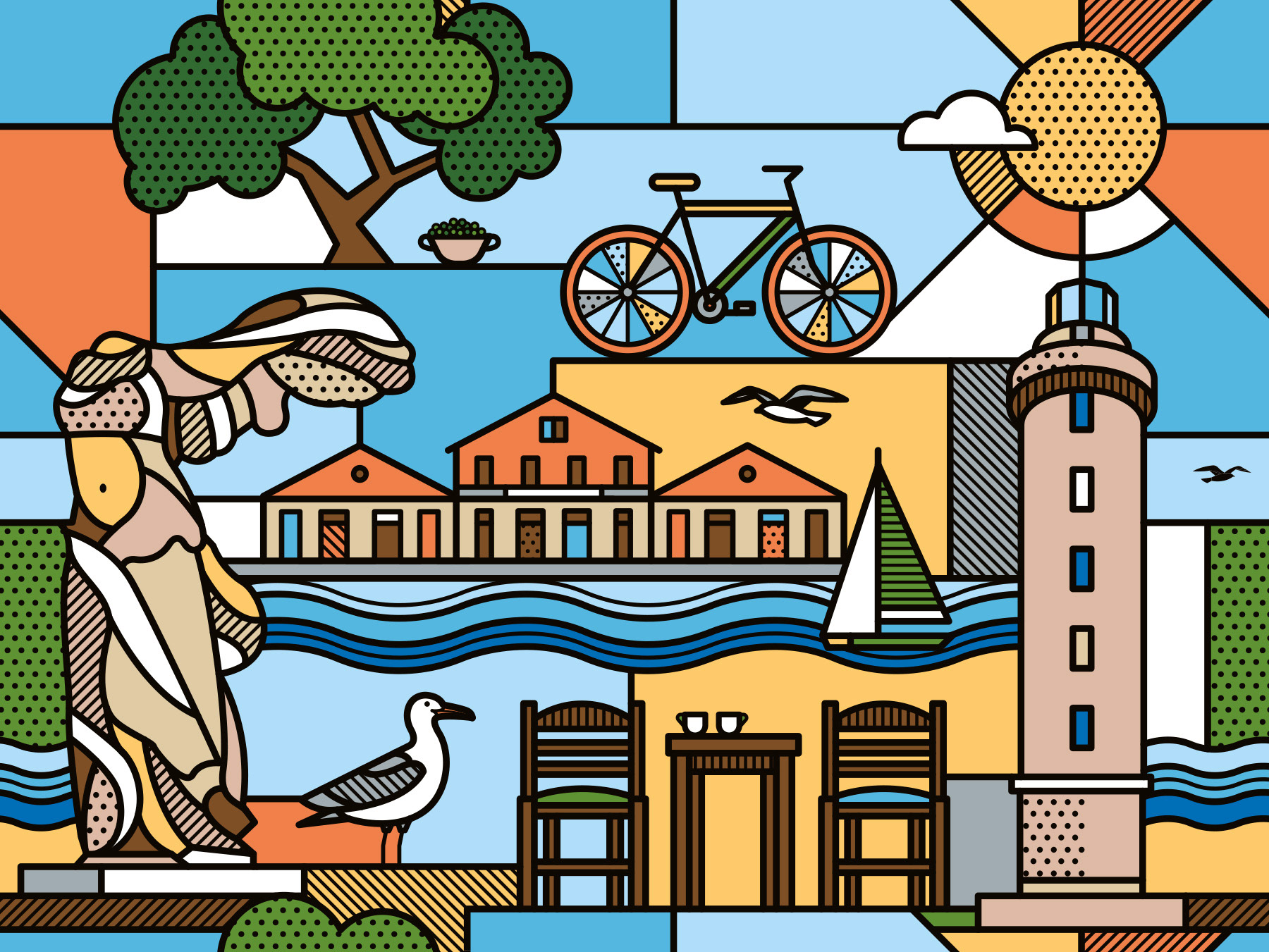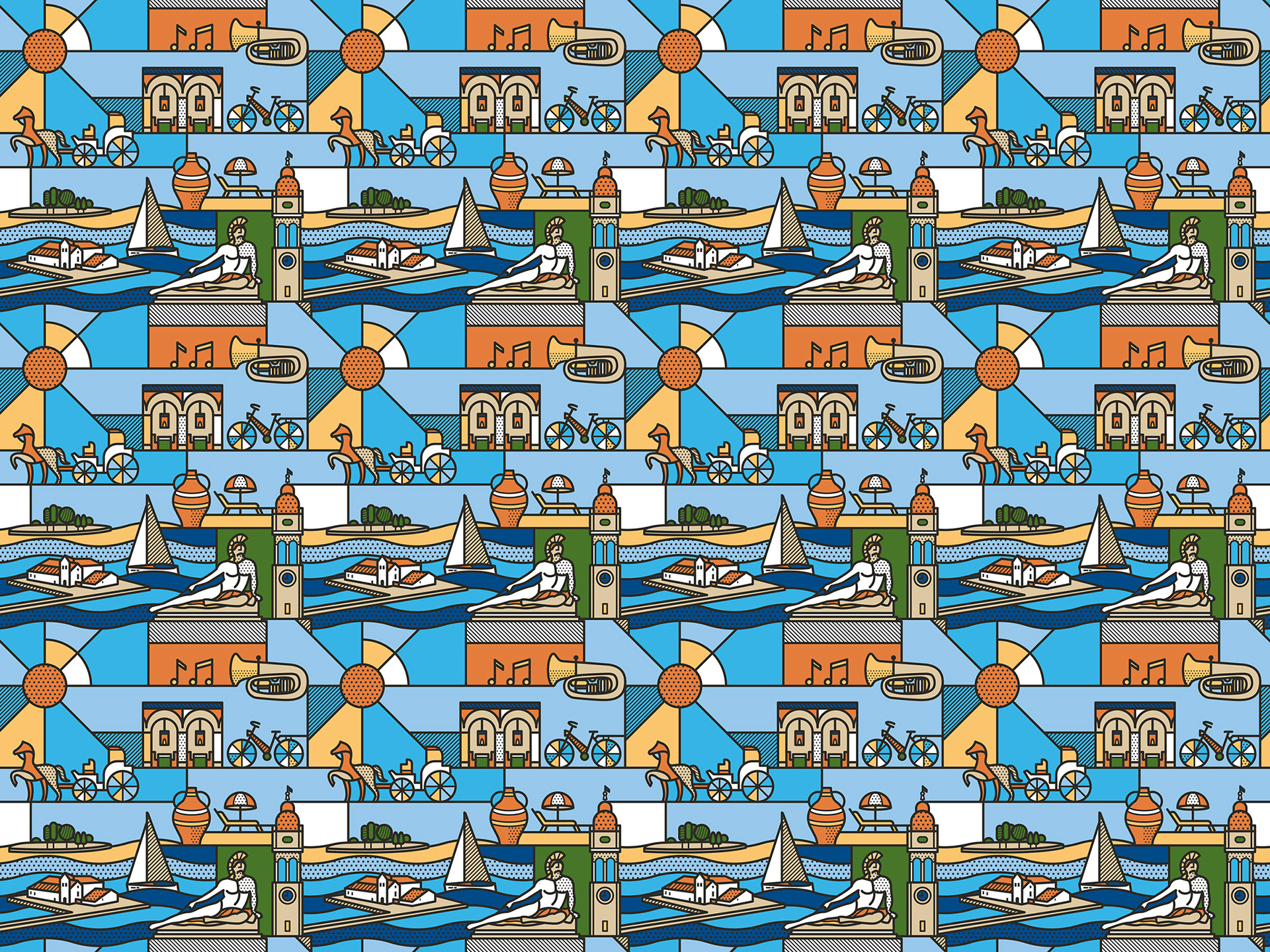 My collaboration with ATP began in 2017, when they first approached me to create a series of illustrations in my signature style. What started as a small commission quickly evolved into an extensive, ongoing partnership that continues to this day. Each piece in the series draws inspiration from iconic locations and symbols across Greece, capturing their essence through a vibrant lens of pop art aesthetics. Beyond standalone artworks, every illustration was thoughtfully crafted to function as a seamless pattern transforming into versatile designs for a wide range of items and souvenirs. The result is a cohesive visual experience that blends artistic expression with high-quality, design forward products.