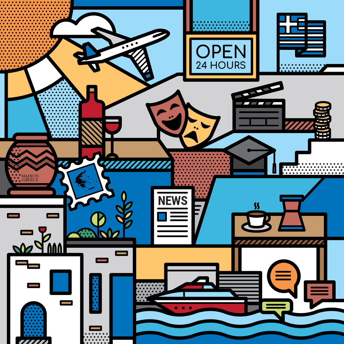 Illustration for a poster made for Monocle magazine about “15 ways to build on Greece’s success”.