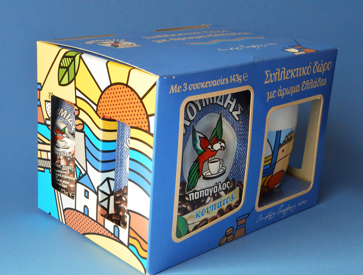 Illustration used on a mug made for Loumidis Papagalos coffee to be sold as a limited edition gift.