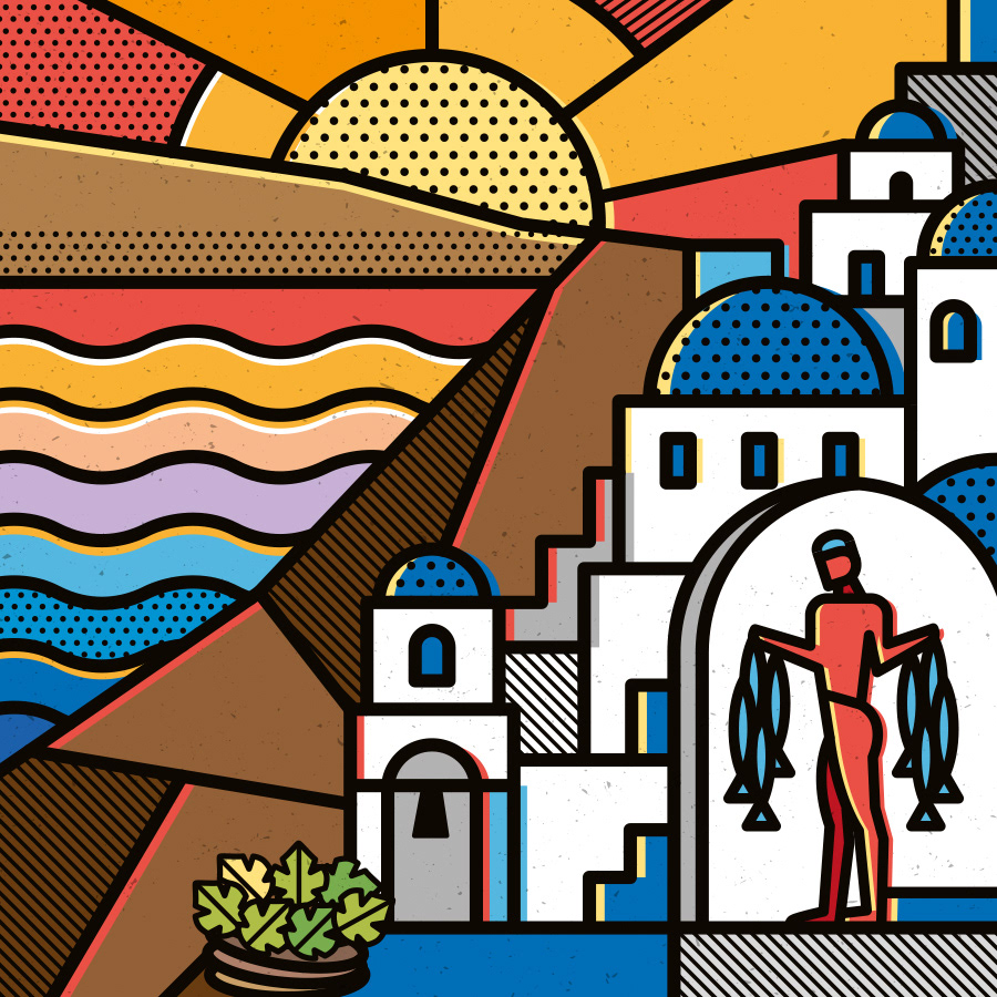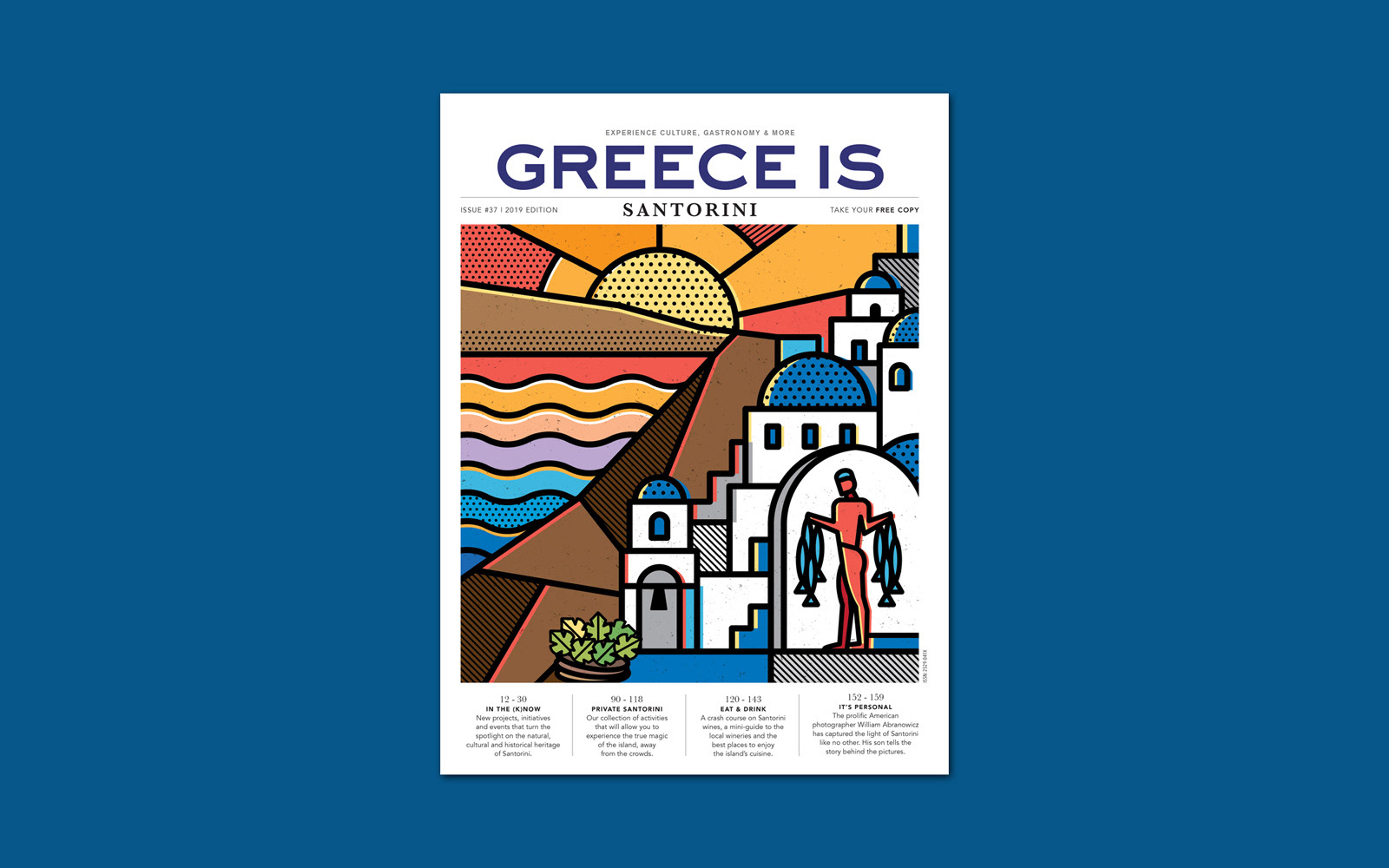 Cover illustration for "Greece Is" magazine. The issue was about Santorini island.