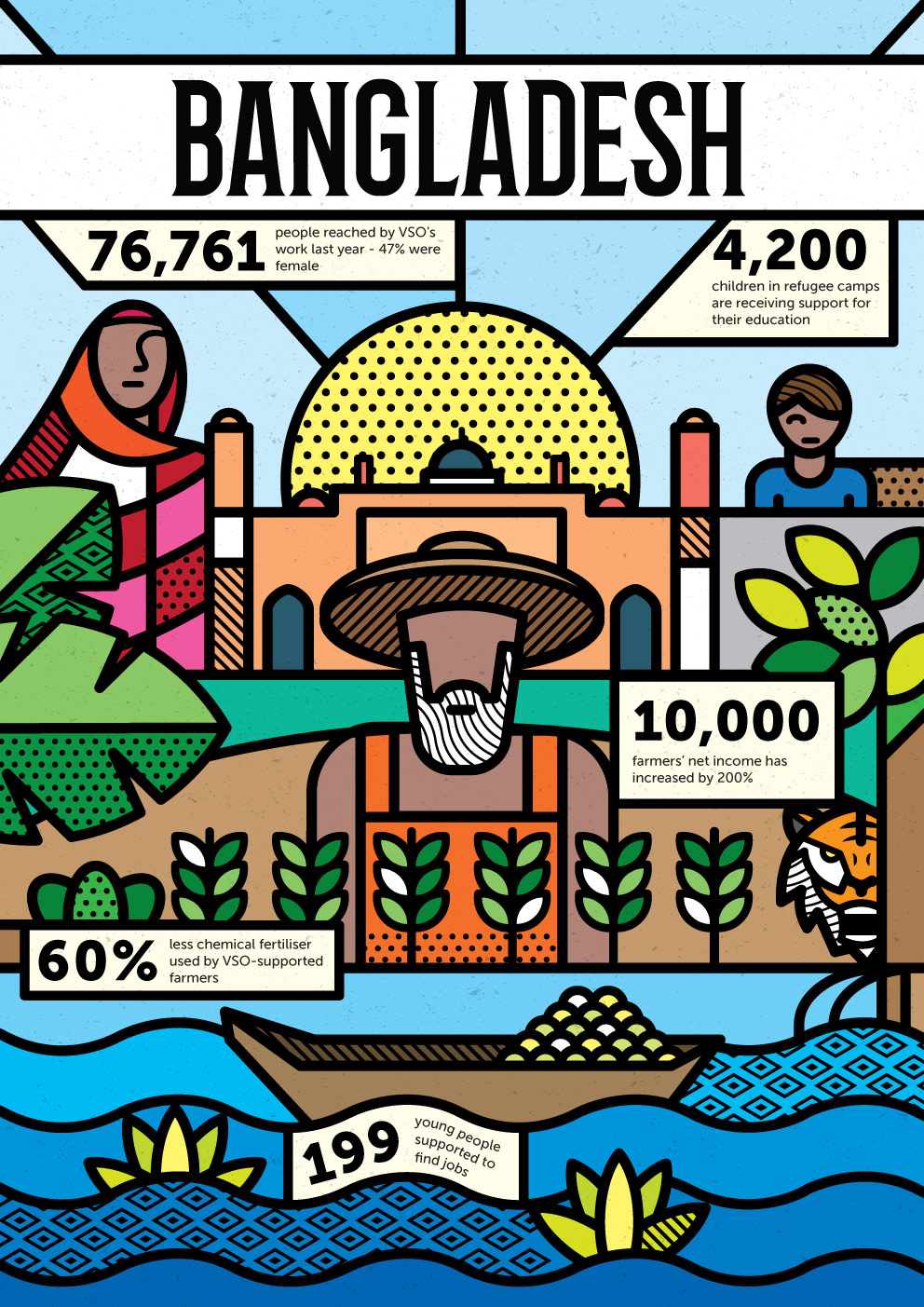 Editorial illustration for UK based charity "VSO" regarding an article about Bangladesh.