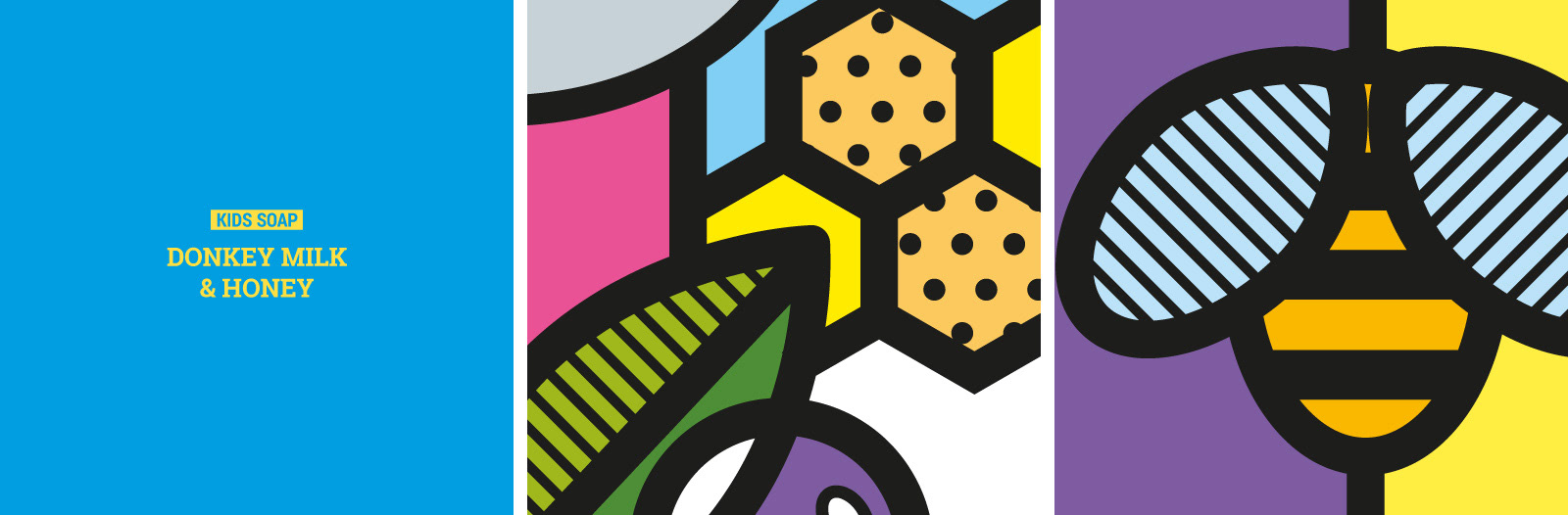 After making a special edition series of the Greek Gods for Elo Soaps, I was now commissioned to rebrand their main soaps and give them a new fresh eye catching look. Elo soaps are 100% natural handmade soaps made from pure Greek olive oil. My first task was to work on the logo, where we went for something clean, elegant and simple that would work well with the illustrations we had in mind to make for the packaging. The logo is handmade, made out of simple shapes and lines. Once the logo was ready it was time to refresh the packaging of the soaps. One of the instructions from the client was for the hanmade soap to be visible and not covered in whole by the packaging. That was also a challenge meaning I didn’t have much space to work on and fit all the information needed, logo and illustrations as the size of the soap is already small. Despite the challenge we managed to fit everything needed on all the soaps. Each illustration on each soap tells a different story based on the key ingredients of each soap and the colors used are also inspired by those ingredients. The style is as usual my pop art geometric style and a little abstract. Hope you enjoy the project.