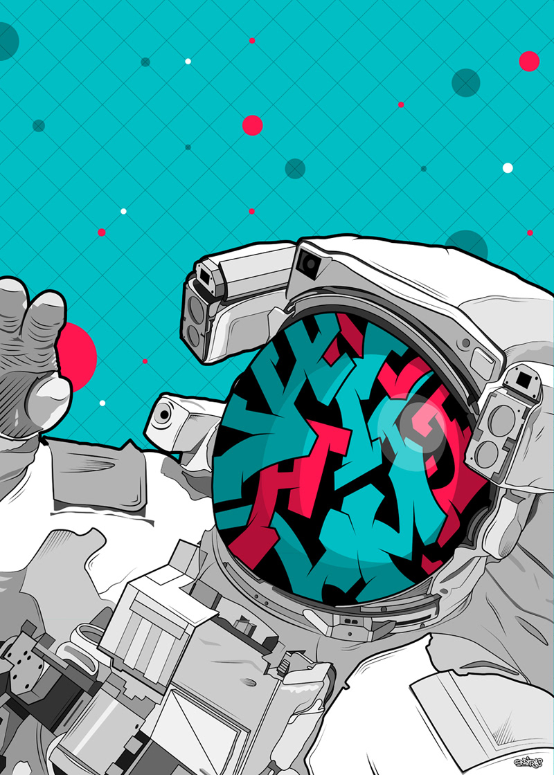 3 new vector illustrations. Experimenting a bit with my linework, colors & in general trying to evolve my style. The astronaut & hip hop skull where made for personal use and the hand for the visual communication designers' club 10 years contest.
