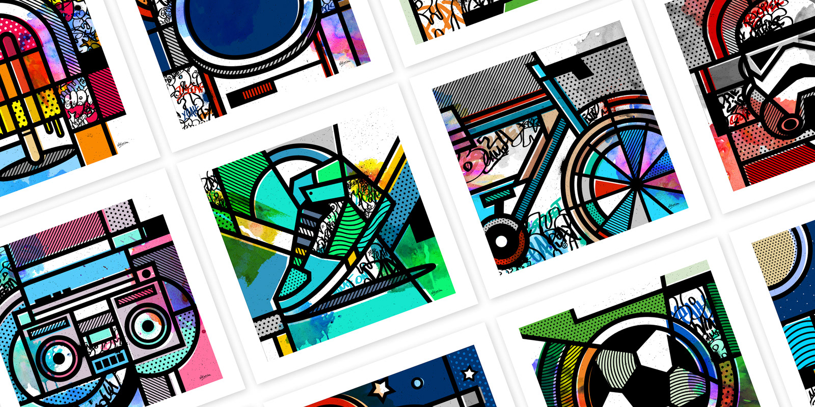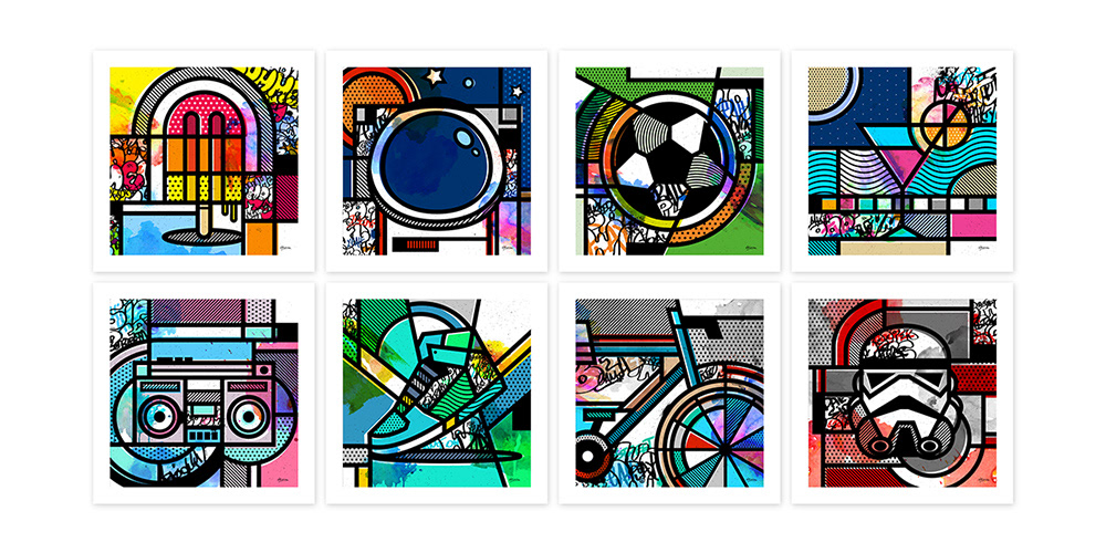 "Orderly Vandalized" is a personal experimental project. This project in a way symbolizes a meeting between my past and my present. By past i mean my graffiti days and how i got into design in the first place and by present, my geometric pop artworks. The idea was to make various geometric abstract artworks in my own style and simply vandalize them. What appealed to me was the idea to mix strict bold lines and shapes with simple graffiti forms, writing and watercolor textures. The graffiti is limited in specific shapes and not all over the place, as if it was done by a polite "vandal". Prints available soon.
