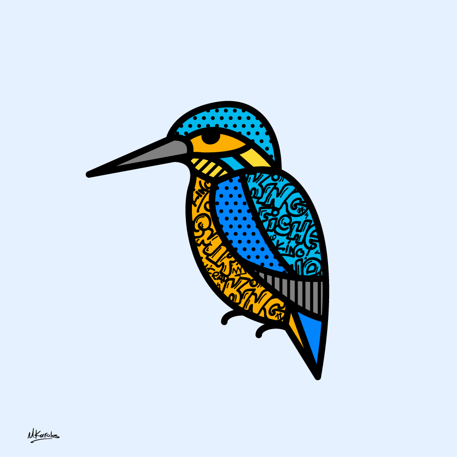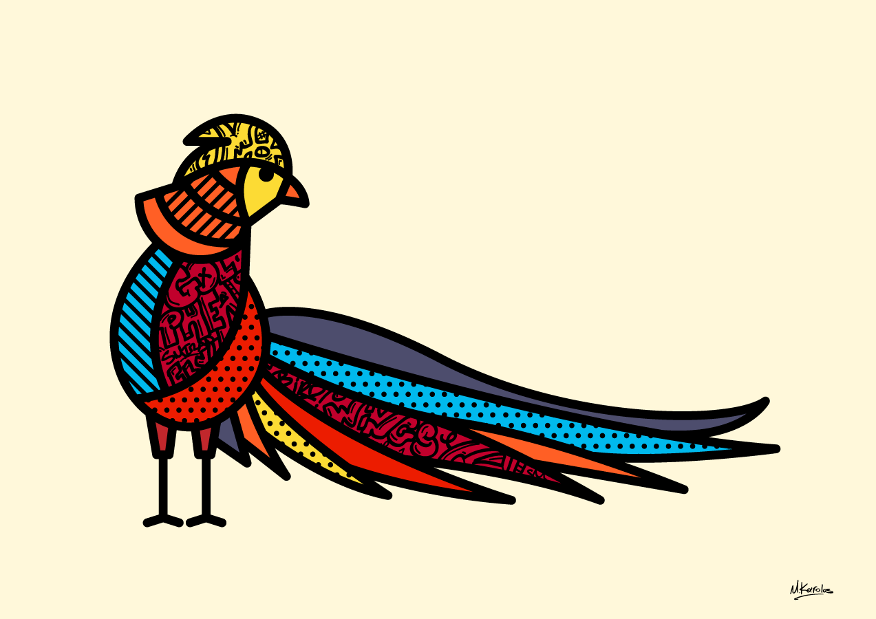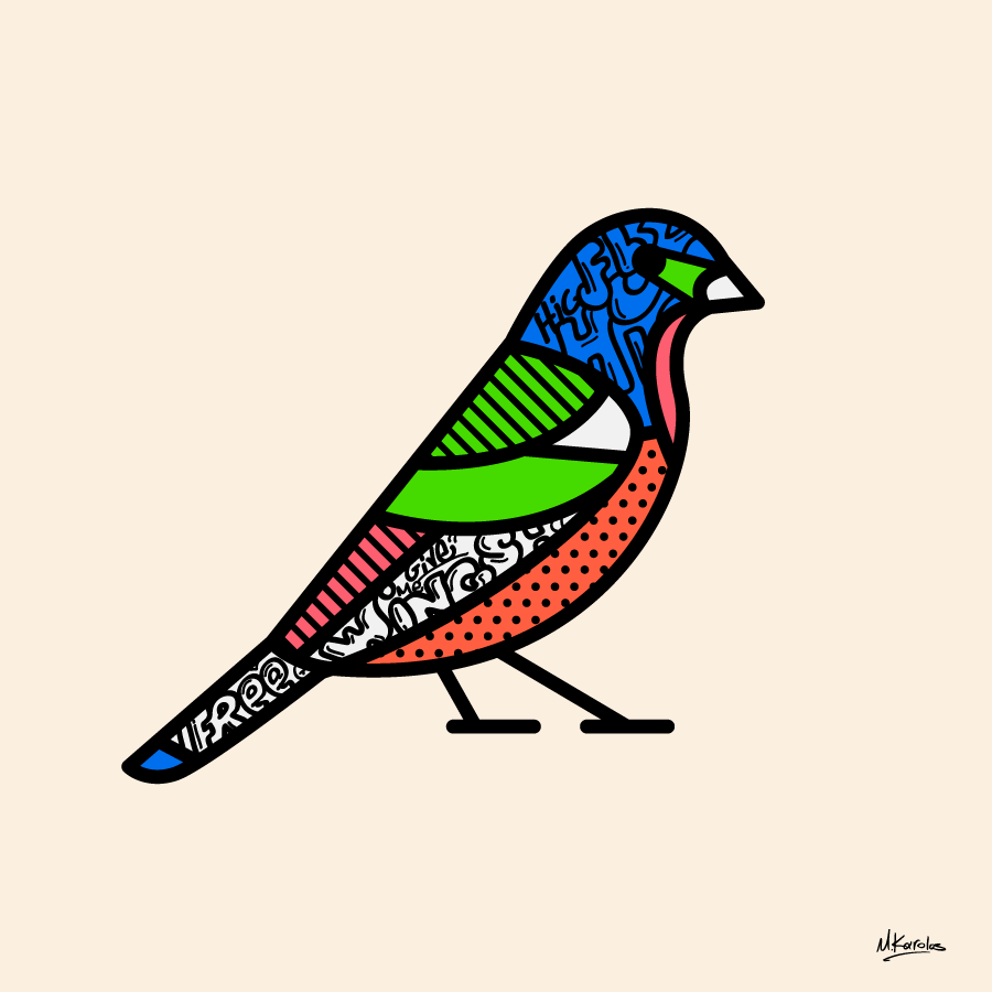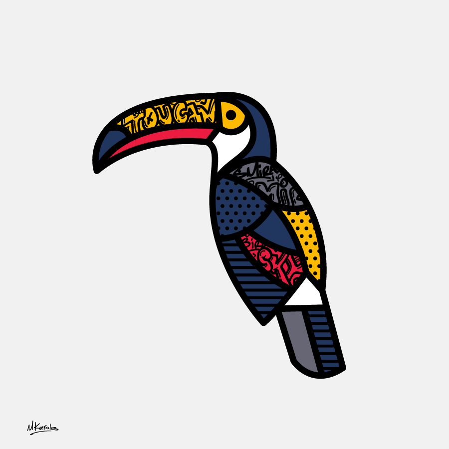 Birds are a work of art by nature. They are beautiful and elegant. They have amazing colorations and patterns and various interesting shapes. So based on that I had an idea and urge to experiment. I decided to mix my pop art-geometric style with some very simple graffiti-like doodles with something as elegant as bird. Quite the contrast but I think it actually worked. Simple shapes, colors inspired by the real birds, a few patterns and some simple graffiti and this is the result. Hope you enjoy the project.