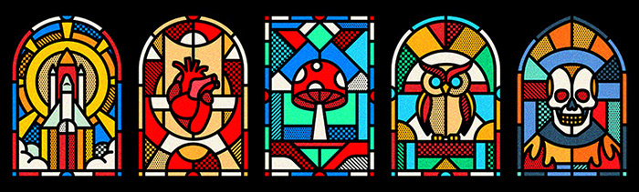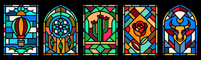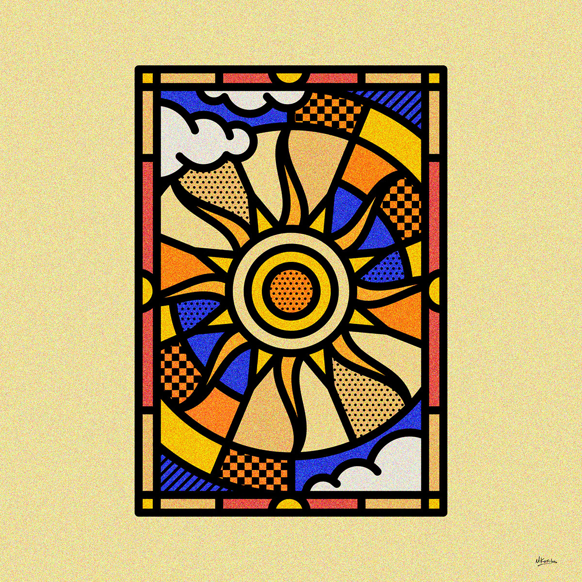 “Windows” is a collection inspired by the timeless beauty of stained glass and the symbolism of tarot, reimagined through my signature style. Each piece is a symbolic window, built around a singular icon. Each window is a symbolic portal open to interpretation. Fragments of color and form become glimpses into my larger body of work, inviting the viewer to find their own meaning.